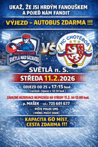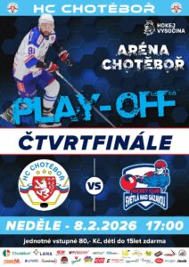 Dnes večer se dohrála základní část soutěže a hned v neděli 8.2.2026 začíná vrchol hokejové sezóny. Naše mužstvo se v prvním utkání čtvrtfinále play off KLM Vysočiny představí domácím fanouškům. Hokejový osud tomu chtěl, aby na sebe narazily celky dlouholetých rivalů, kteří si nedarují ani pověstný kousíček ledové plochy. Fanoušci obou táborů na tribunách poženou své hráče...